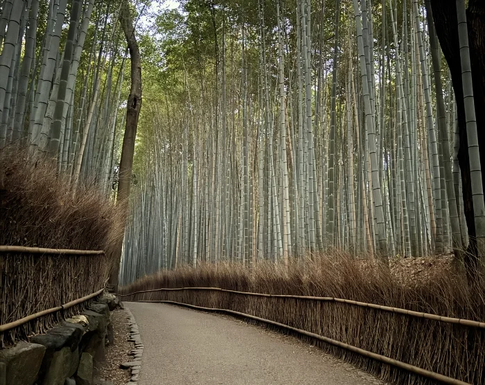 Ønsker du at opleve en anden side af Kyoto, kan du i stedet tage med offentlig transport mod vest til Arashiyama og besøge Tenryu-ji-templet med sin klassiske have og udsigt til de grønne bjerge. Her kan du også gå en tur gennem Arashiyamas berømte bambusskov, hvor høje bambusstammer danner grønne korridorer fyldt med lys og ro. Også værd at opleve er det charmerende Saga Toriimoto-kvarter med sine velbevarede huse og hyggelige stræder.