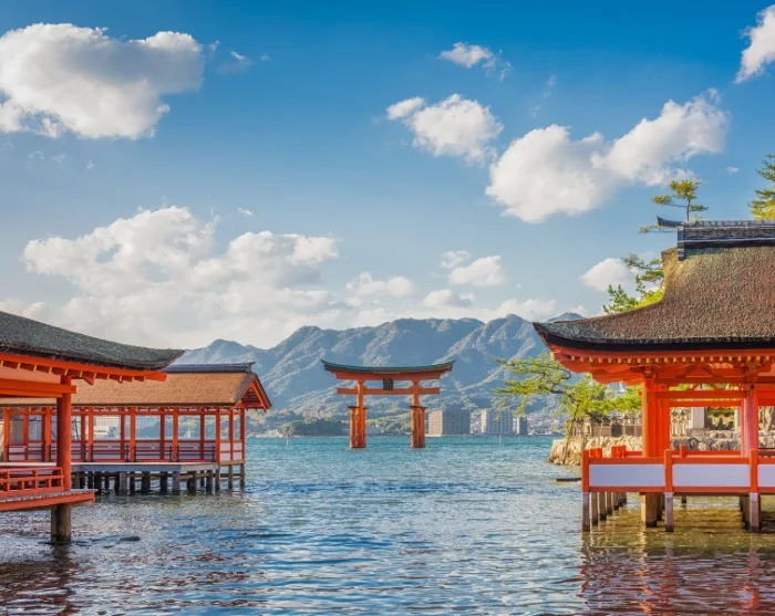 Turen fortsætter herefter med tog og færge til den hellige ø Miyajima, der betragtes som et af Japans mest naturskønne og poetiske steder. Øen udstråler en helt særlig ro med sine shintohelligdomme, buddhistiske templer og charmerende gader i Edo-stil, altsammen omgivet af frodig natur. Et naturligt højdepunkt er Itsukushima helligdommen, hvor den ikoniske torii port, Otorii, under højvande synes at svæve over vandet, et syn som har gjort stedet til et af Japans mest fotograferede motiver.