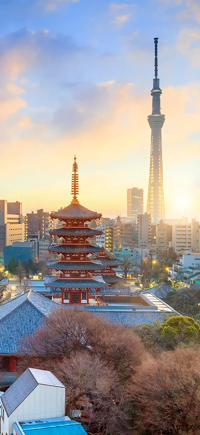 Asakusa er Tokyos gamle bydel. Her er stadig nogle gamle bygninger tilbage, og området er uden store højhuse. Ud over stemningen i gader og stræder er den helt centrale seværdighed Sensoji. Overfor indgangen til templet ligger turistinformationen. Tag elevatoren til toppen af bygningen og få et fint kig ind over tempelkomplekset. Sensoji er Tokyos ældste tempel, og for mange japanere har det særlig betydning at komme her for at tænde røgelsespinde. Nakamise er den lange gågade med souvenirbutikker og madboder, der fører op til Sensoji templet. Her er der altid et stort leben, og du vil opleve kvinder, par og nogle gange hele familier iført traditionelle kimonoer. De er på vej for at tænde røgelsespinde og vifte hellig røg på sig i håb om at blive sygdomme kvit, opnå held i livet, få et barn eller noget helt fjerde.