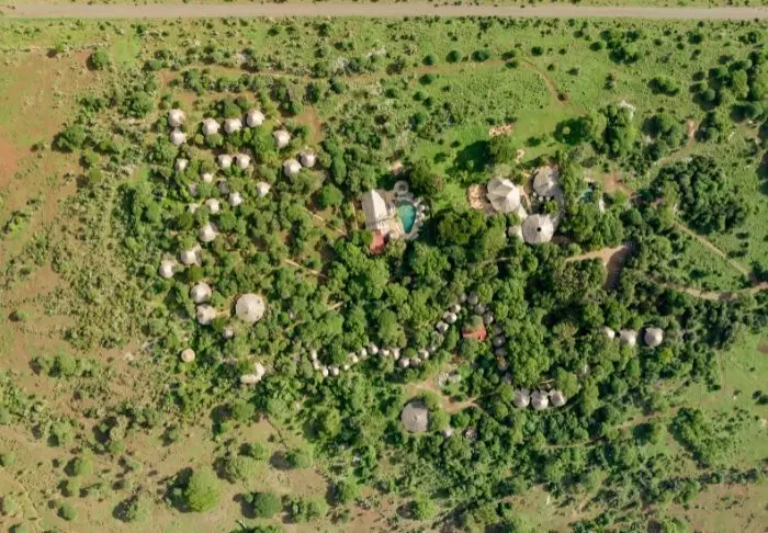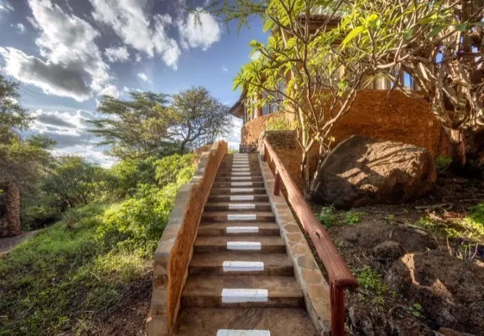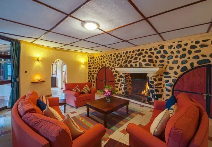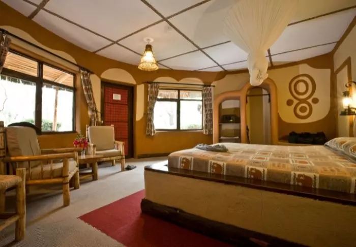 De rummelige hytter ligger spredt på den 200 hektar store ejendom i omgivet af de smukke haver. Der er i alt 83 værelser, alle med veranda, badeværelse og toilet. Indretningen er holdt i varme jordfarver og der er tillige vægmalerier inspireret af Masai kunst i nogle af værelserne.