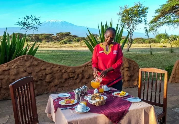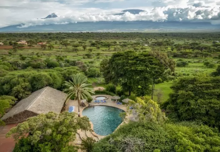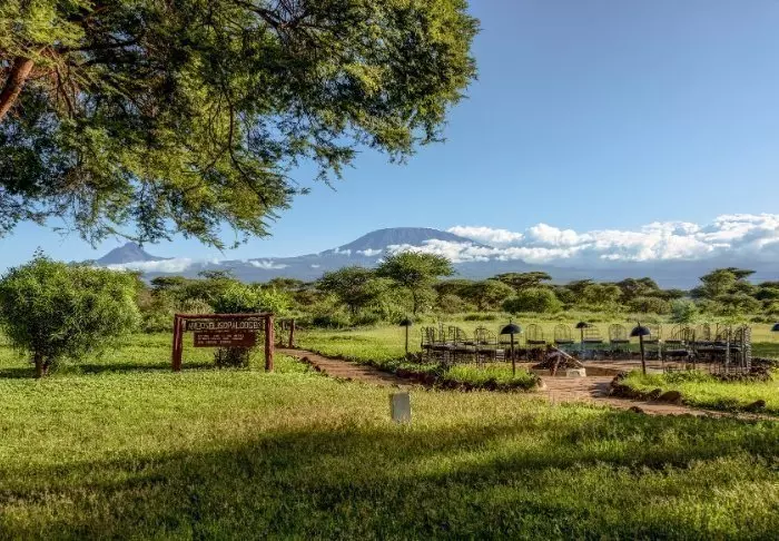 Denne charmerende lodge ligger i Amboseli Nationalpark ved foden af Kilimanjaro.