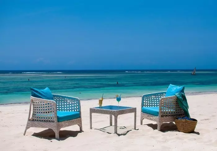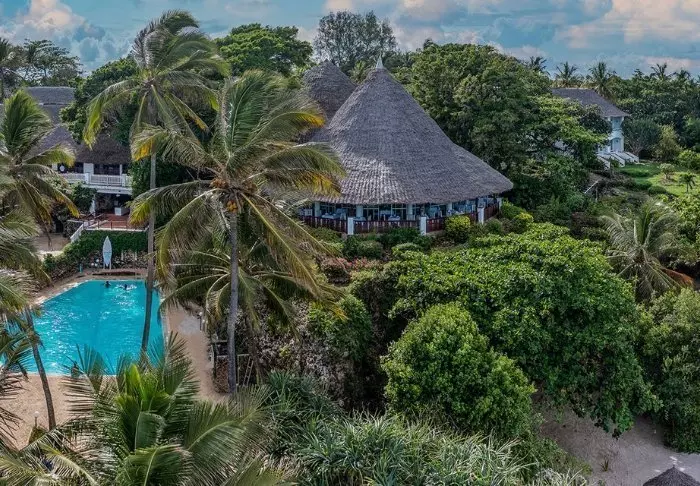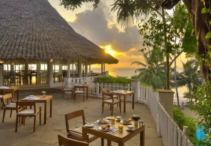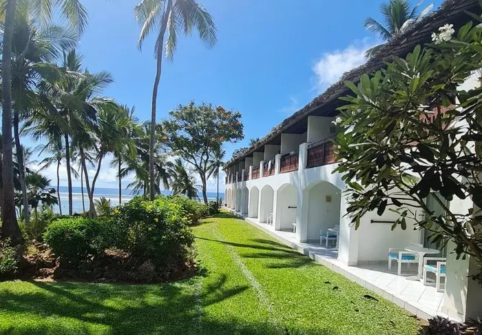 Resortet ligger ved en af verdens smukkeste strande, den kridhvide Diani Beach, og udsigten over det Indiske Ocean er næsten som taget ud af et postkort. Selv fra resortets 18-hullers golfbane er der udsigt til det turkisblå hav.