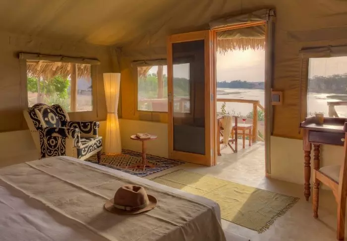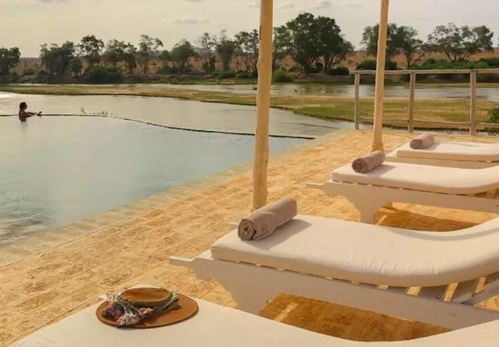 De 18 telte ligger alle med udsigt til Galana-floden, som er Kenyas 2. største flod. Alle telte har egen balkon, så du får den bedst mulige udsigt til floden. Ja, selv fra poolen er der udsigt til floden.
