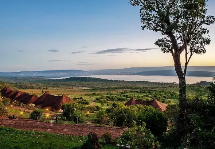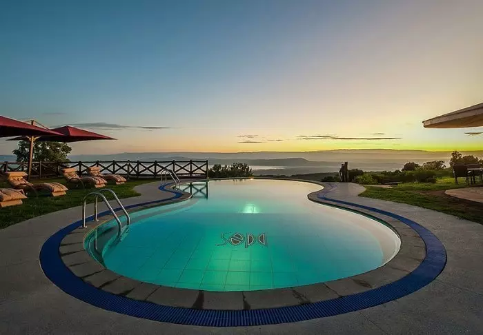 På skrænten af Great Rift Valley med udsigt over Lake Nakuru Nationalpark finder du den 4-stjernede Lake Nakuru Sopa Lodge. Om aftenen kan du skimte lysene fra byen Nakuru på den anden side – hvilket næsten gør mørket fra selve nationalparken endnu mørkere. Om dagen er der den flotteste udsigt over det frodige landskab, som udgør en af Kenyas fineste nationalparker.