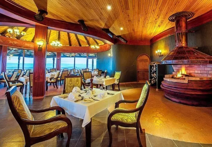 Hovedbygningen byder på en imposant lounge samt bar og restaurant. På kølige aftner tændes der op i pejsen indenfor – på lune aftener kan du nyde din drink på den store udendørs terrasse.