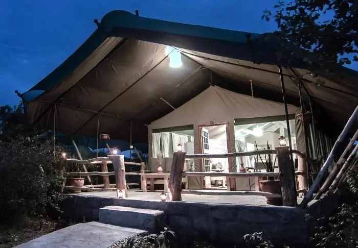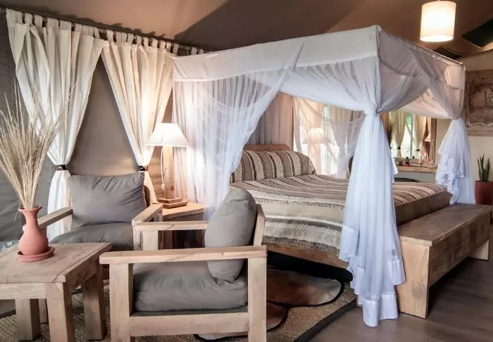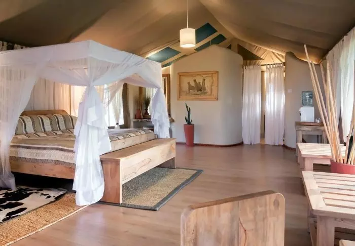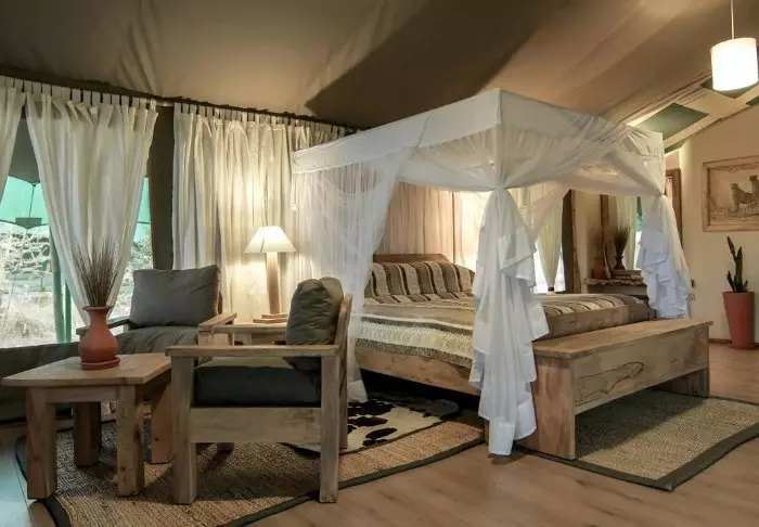 Teltene er store med rigeligt plads til bagagen og meget hyggeligt indrettet. Alle telte har egen veranda og gulve både udenfor og indenfor er faste, så man har fornemmelsen af at bo på et værelse – med kanvasvægge. Der er Wi-Fi i alle telte.