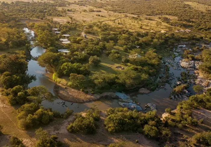Olengoti Eco Safari Camp ligger lige ved Talek flodens bredder, og består af 11 luksustelte og 6 luksushytter.