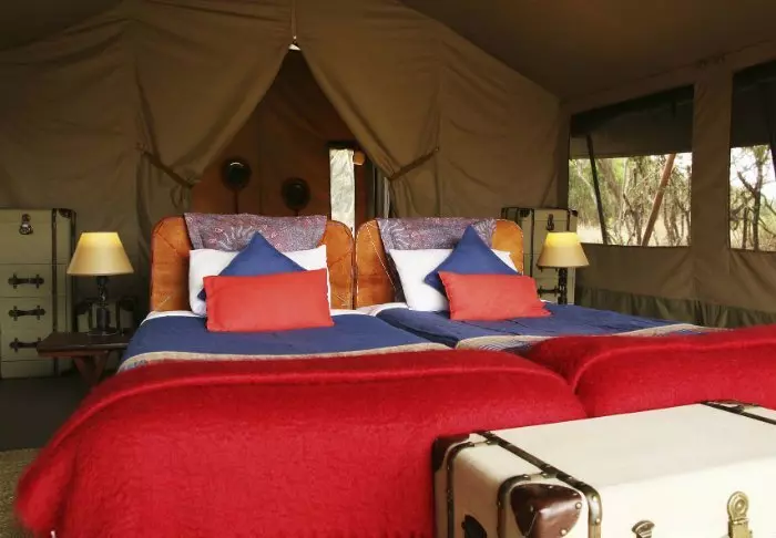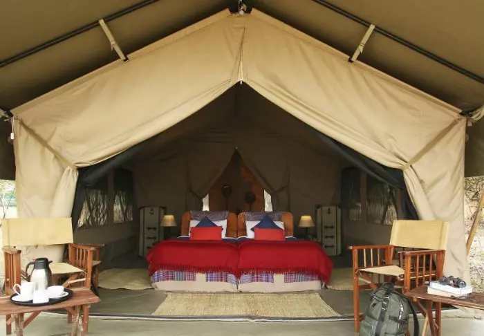 Teltene er store og velindrettet. Sengene har rigtige dyner og lækre bomuldslagner, og masaikulturen afspejler sig i udsmykningen med farverige sengetæpper og håndlavede møbler. Alle teltvægge består af kanvas – også badeværelserne. Men her er rigtigt toilet, rindende vand og bruser, så selvom du bor i telt og kan høre og dufte bushen udenfor, går du altså ikke på kompromis med komforten. Foran hvert telt har du din egen lille ”veranda” med safaristole og -borde og vi gætter på, at du nok kommer til at tilbringe en del timer her med bare at betragte naturen omkring dig.