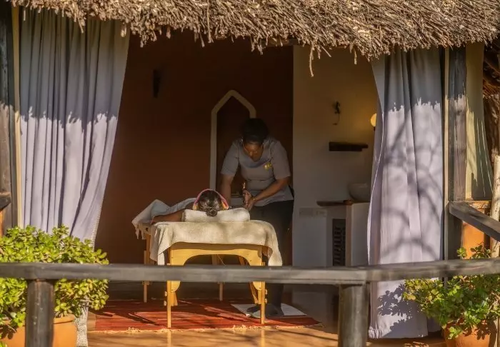 Tawi består af 13 “hytter”, som alle er elegant indrettet i en rustik stil og stadig med masser af charme. Alle værelser har både bruser og badekar på badeværelset, og på verandaen er der plads til at hygge sig med den medbragte bog. På Tawi er væggene af sten, mens døre og vinduer består af myggenet. Du har altså komforten fra et rigtigt, muret værelse mens du gennem nettene stadig kan høre og dufte lydene udenfor. Det er værd at bemærke, at værelserne har relativ åbne badeværelser, så Tawi egner sig bedst til par.