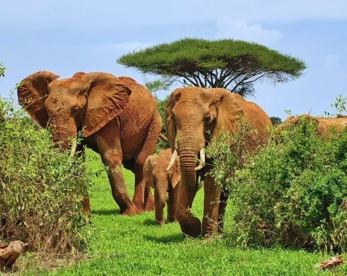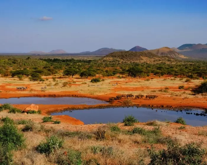 I Tsavo East er jorden knaldrød, og det giver dyrene et lidt særpræget rødligt udseende. Den røde jord kan du lige så godt vænne dig til – den møder du nemlig igen, når du kommer til Madagaskar.