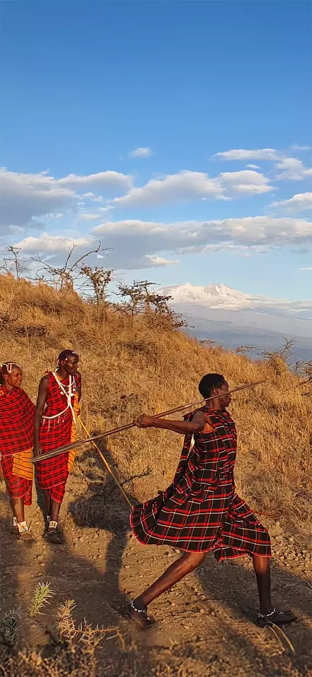 Dagens program afhænger lidt af, hvornår på dagen du ankommer. Måske er der tid til at slappe lidt af – måske kommer du lige i tide til at overvære spydkastningen. I gamle dage dræbte masaierne løver med spyd, hvis deres kvæg var truede. I dag er det dog en træstub, som må lade livet, for som de siger: ”besøgende kommer jo for at se løverne, så vi må gøre, hvad vi kan for at bevare dem”! Masaierne lever på mange måder i pagt med naturen, fordi de er så afhængige af den.