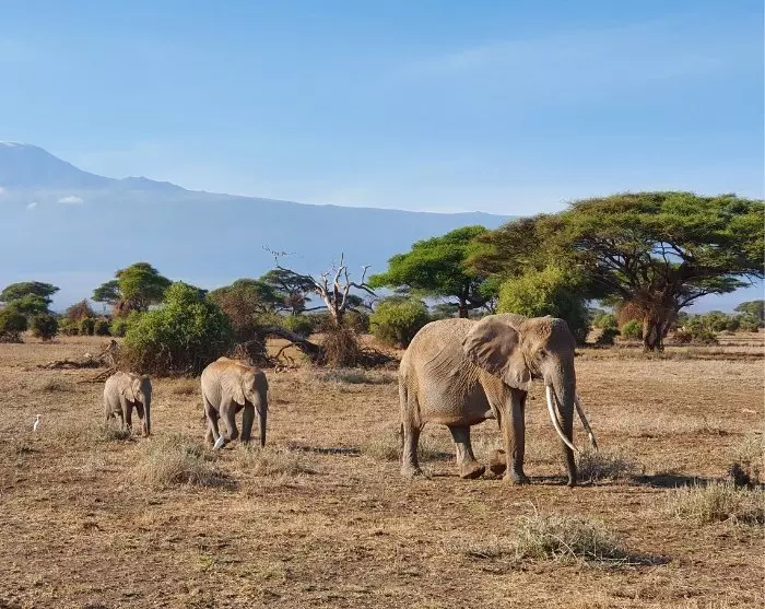 Dagen går med safari i Amboseli. Pga. det tørre klima og de åbne sletter er her rigtig gode chancer for at se vilde dyr, og udsigten er helt fantastisk. Mon ikke der bliver mulighed for at få et godt ”skud” af det kendte motiv med elefanter, der går over savannen smukt flankeret af Kilimanjaro og de ikoniske akacietræer i baggrunden – et motiv, som bare skriger ”dette er Afrika”!