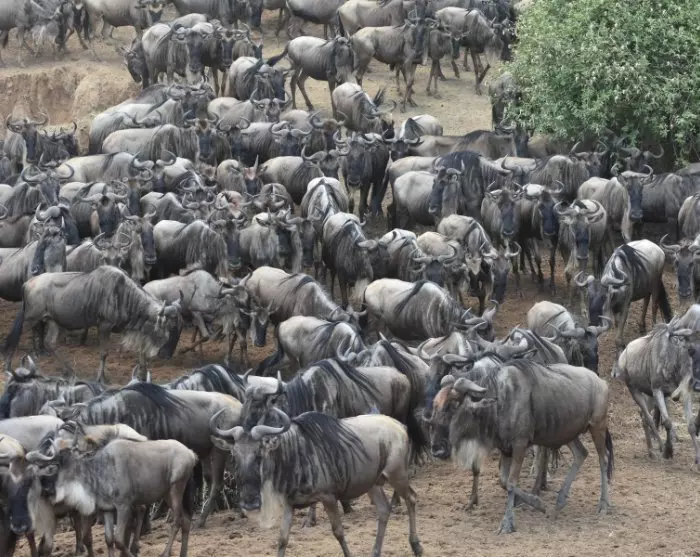 De næste dage kommer du tæt på et væld af dyr, som du oplever fra den beskyttende landcruiser. Fra juli til oktober kan man opleve når den 1.200 km lange vandring af over en million gnuer, et par hundredetusinde zebraer plus en masse Thompson gazeller går på den kenyanske side af The Great Migration. Det er under denne vandring, at en del bliver ofre for de enorme nilkrokodiller, når de må krydse Marafloden.