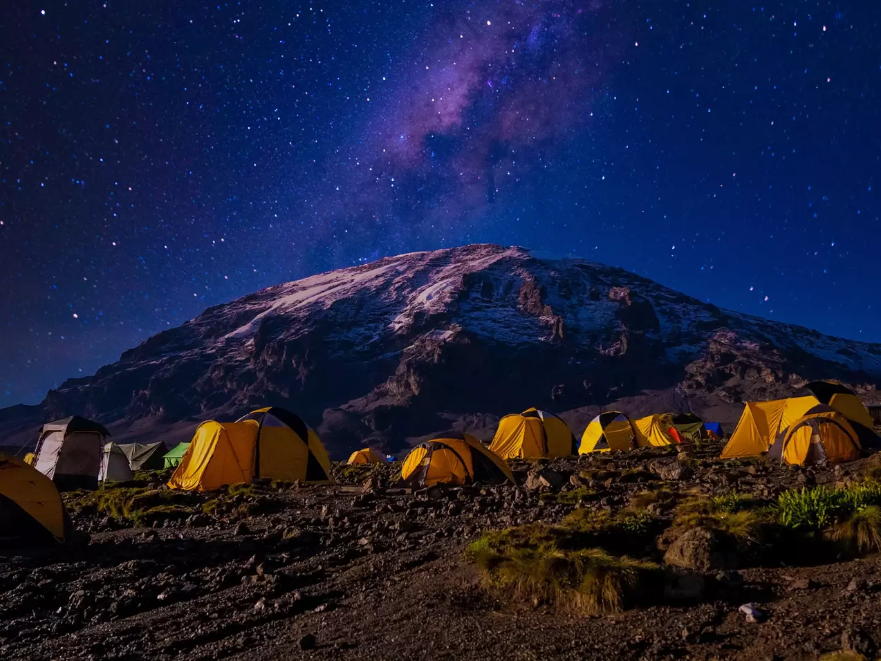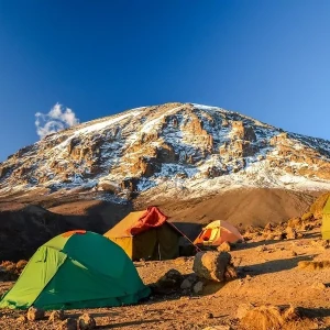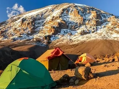Al overnatning sker i telte, med undtagelse af Marangu ruten, hvor overnatning foregår i primitive sovesalsagtige hytter.