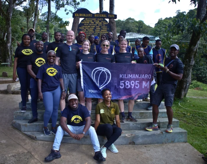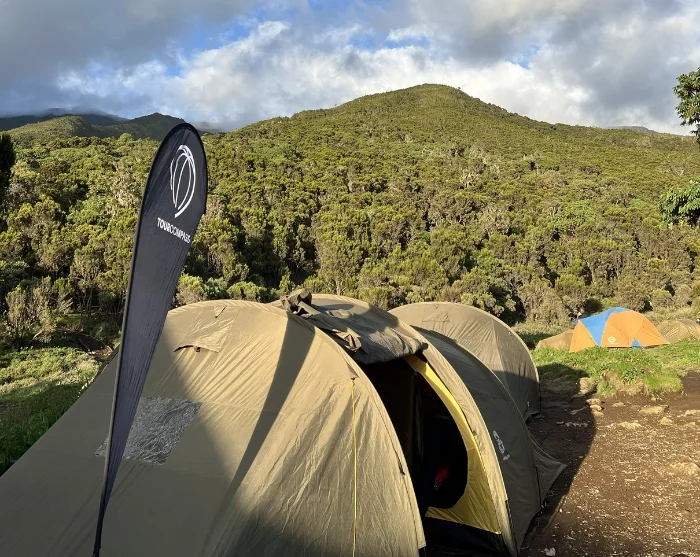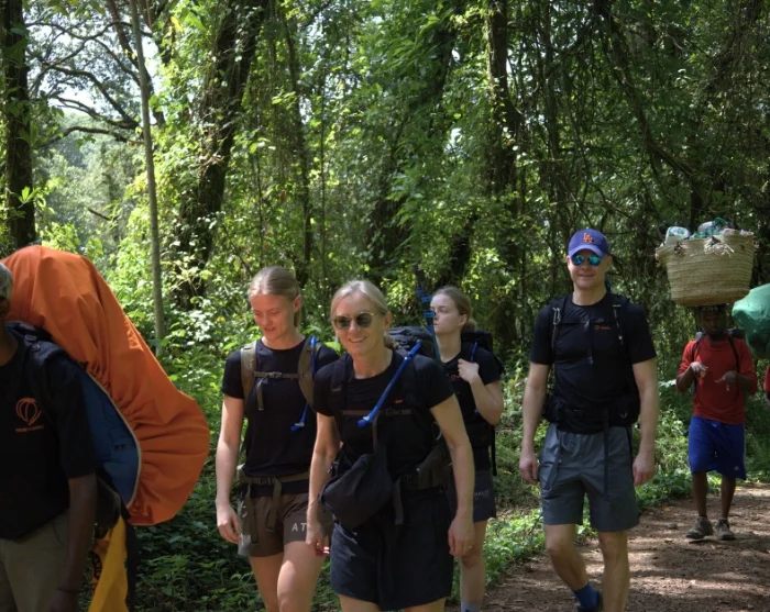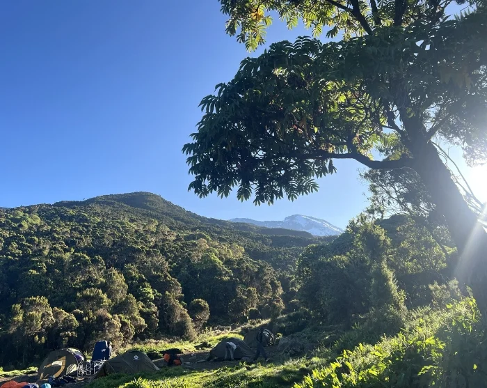 Efter morgenmaden forlader du Moshi og kører til landbyen Machame – en køretur på 50 min. Her møder du dit team af guider, kokke og bærere, som forbereder og pakker dit udstyr. Herefter går turen til Machame Gate, som er den sydvestlige indgang til Kilimanjaro Nationalpark. Her er der indtjekning og registrering, inden du begynder din vandring gennem regnskoven til toppen af Kilimanjaro. Kilimanjaro består af tre udslukte vulkaner; Kibo med det højeste punkt Uhuru (5.895 m.o.h.), Mawenzi (5.149 m.o.h.) og Shira (3.962 m.o.h.).
