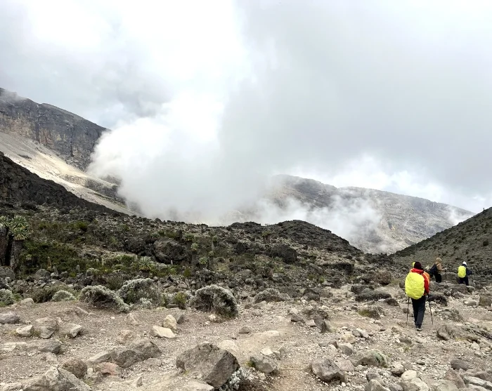 Dagens etape vil byde dig udfordringer både terræn- og højdemæssigt, så husk at tage det roligt og lyt til din krop. Selv om du slutter dagen med kun +110 højdemeter, er du undervejs oppe på +790 højdemeter ved Lava Tower, inden du går ned til Barranco Camp. Der er mange, som mærker de første tegn på højdesyge i disse højder, så vær opmærksom på de mindste tegn og informer guiden herom.