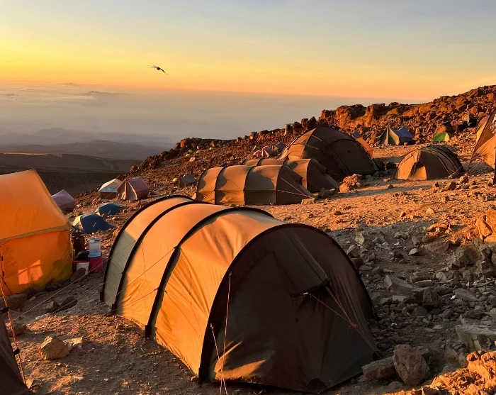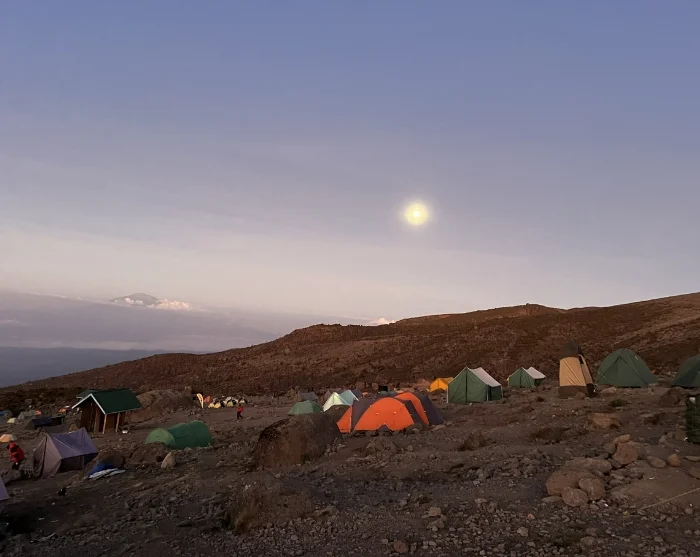 Forbered dit udstyr og varme tøj til næste dags vandring til toppen og opbevar drikkevand i en termoflaske, så det ikke fryser til is. Sørg for at gå tidligt i seng for at få de menneskelige batterier ladet op til Kilimanjaros ultimative udfordring.