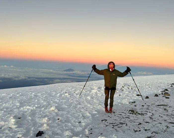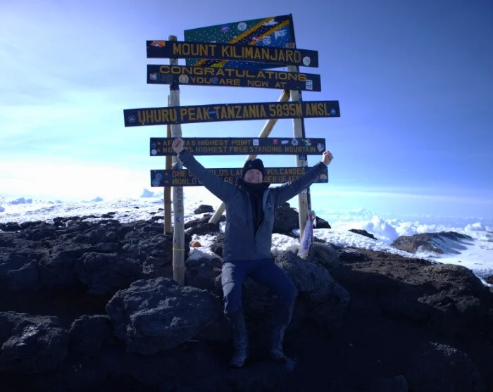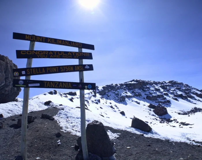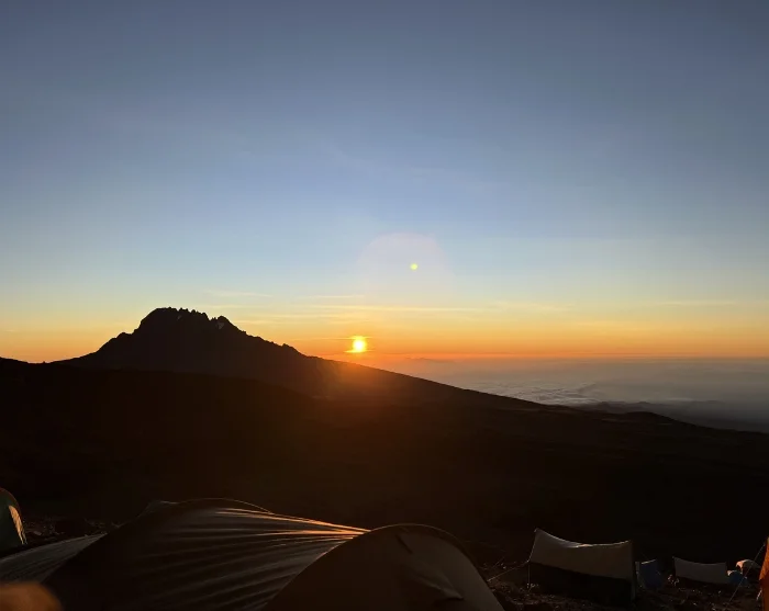 Omkring midnat står du op og du får serveret en snack, inden du i mørke starter den sidste opstigning til toppen. Det vanskelige terræn de ca. 6 timer frem til Stella Point er den største udfordring for de fleste. Målet er at nå Stella Point kort tid efter solopgang, så du kan nyde den rødglødende solopgang her. Hvilet bliver ikke langt, da det ellers bliver nærmest uoverkommeligt at komme i gang igen som følge af kulde og træthed. Du fortsætter langs kraterkanten og det sidste stykke er en jævn stigning. Afhængig af årstiden kan du risikere, at der er sne det sidste stykke til dit endelige mål, som er Uhuru Peak, toppen af Kilimanjaro og toppen af Afrika. Når du toppen 5.895 m.o.h., kan du klappe dig selv på skulderen, nyde den fantastiske udsigt og tage et selfie ved Uhuru Peak skiltet, som evigt minde.