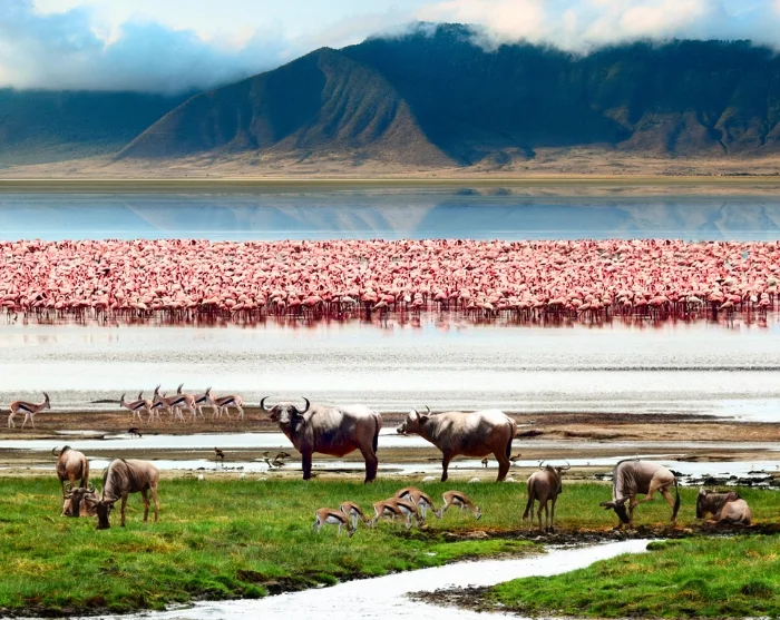 Efter morgenmaden og check ud fra hotellet går turen til Lake Manyara Nationalpark. Dette er en af Tanzanias mindste nationalparker på 330 km2, hvoraf selve søen dækker godt totredjedele – lidt afhængig af årstiden.