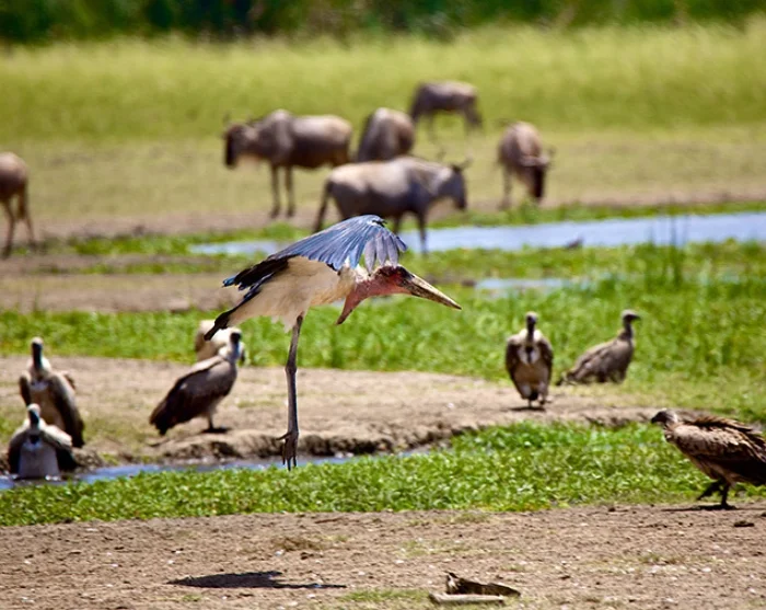 Dette landskab gennemskæres af den livgivende Tarangire flod, som aldrig udtørrer. Hertil søger store flokke af bøfler og en af de største koncentrationer af elefanter noget sted i verden. I kan være heldige at se flokke på op til hundrede elefanter. Her finder I også geparder, leoparder, løver, hyæner, træklatrende pytonslanger og alskens byttedyr: kudu, impala, gazeller osv.