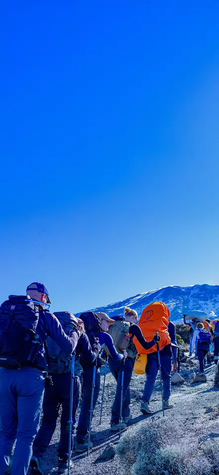 Efter en nat under den imponerende Great Barranco Wall og et solidt morgenmåltid klatrer du op ad den berygtede klippevæg. Noget som heldigvis er lettere end det ser ud til. På toppen under Heim gletsjeren, der hænger som kæmpe is-gardiner ud over massivet, folder Kilimanjaros skønhed sig ud på fantastisk vis.