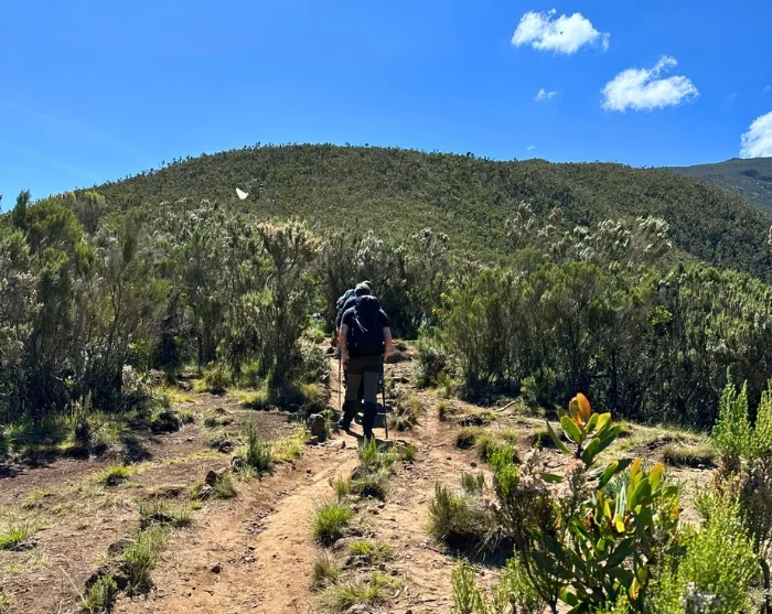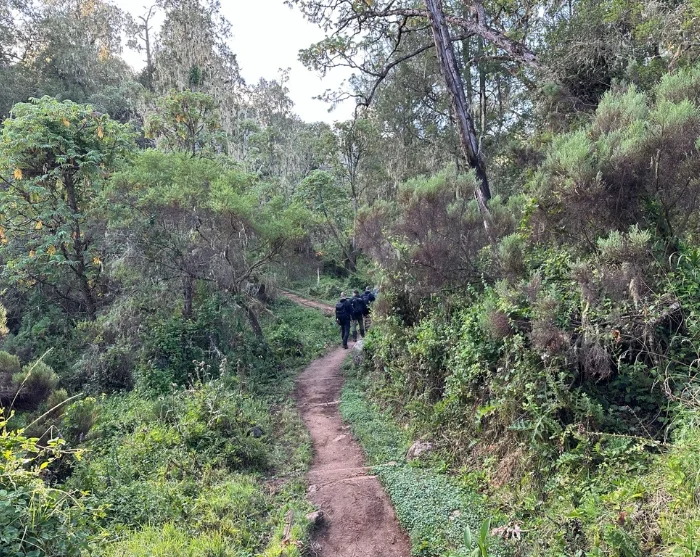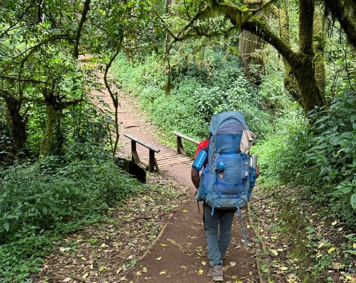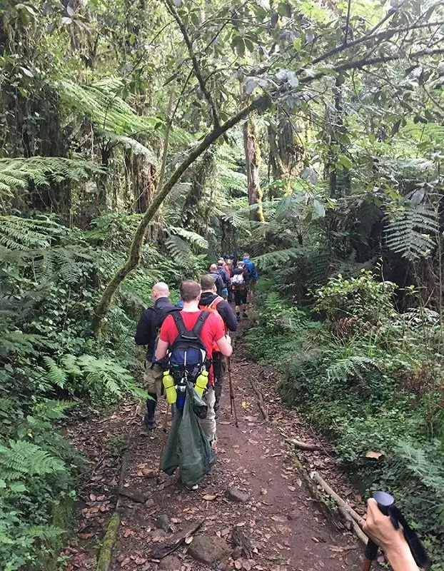 Kilimanjaro består af tre udslukte vulkaner; Kibo med det højeste punkt Uhuru (5.895 m.o.h.), Mawenzi (5.149 m.o.h.) og Shira (3.962 m.o.h.). Du vandrer gennem skov og regnskov, hvor du måske er heldig at få et glimt af de meget sjældne og meget smukke sort/hvide colobus aber eller nogle af skovens mange andre dyr. Bærerne går i forvejen, så dit telt står klar, når du ankommer til Mti Mkubwa Camp.