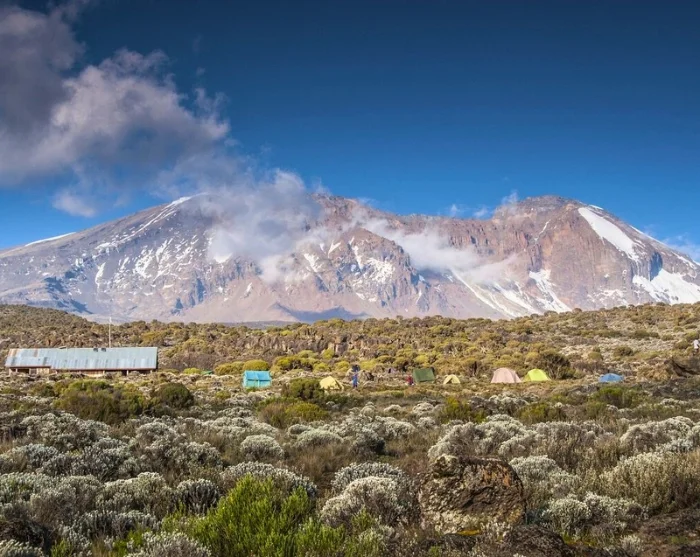 Dagens etape går gennem det sidste stykke af skoven, og snart åbner hedelandskabet sig, som er præget af lyng, vilde blomster, græs og stenede stier. Du vandrer over Shira plateauet med flot udsigt til Kibo og Mt. Meru. Når du kommer til Shira 1 Camp, har du udsigt til Kilimanjaro Western Breach, som er den vestlige kraterkant med den fantastiske gletsjer.