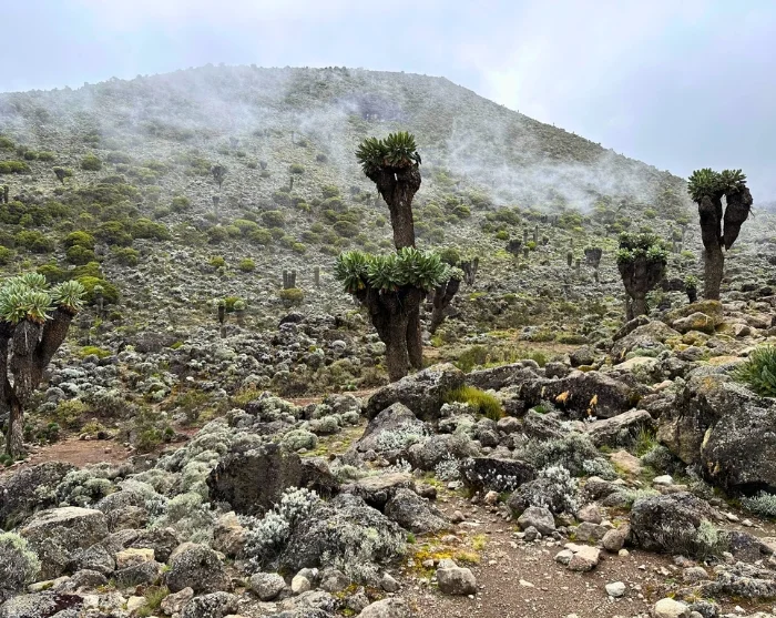 Du fortsætter opstigningen over plateauet til Shira 2 Camp. Der er adskillige ruter, du kan følge, hvilket gør det til en glimrende akklimatiseringsdag. Under dagens vandring kan der både være udsigt til det enorme Kibo massiv og du kan også opleve skyer i øjenhøjde.