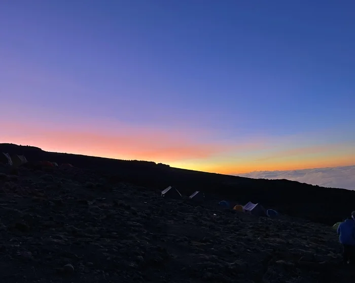 Forbered dit udstyr og varme tøj til næste dags vandring til toppen og opbevar drikkevand i en termoflaske, så det ikke fryser til is. Sørg for at gå tidligt i seng for at få de menneskelige batterier ladet op til Kilimanjaros ultimative udfordring.