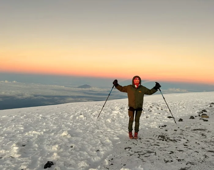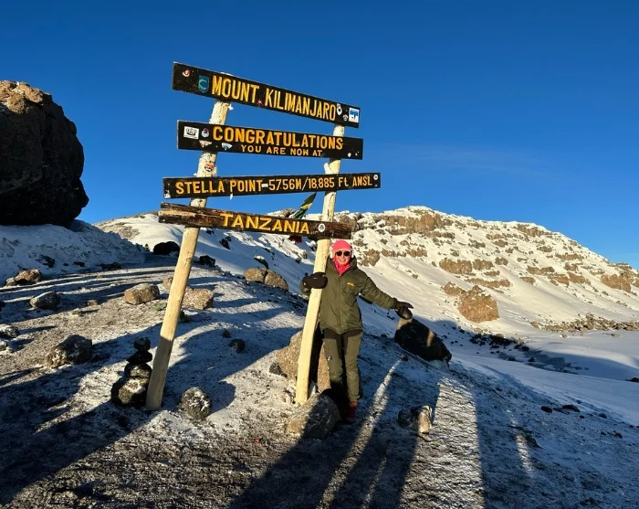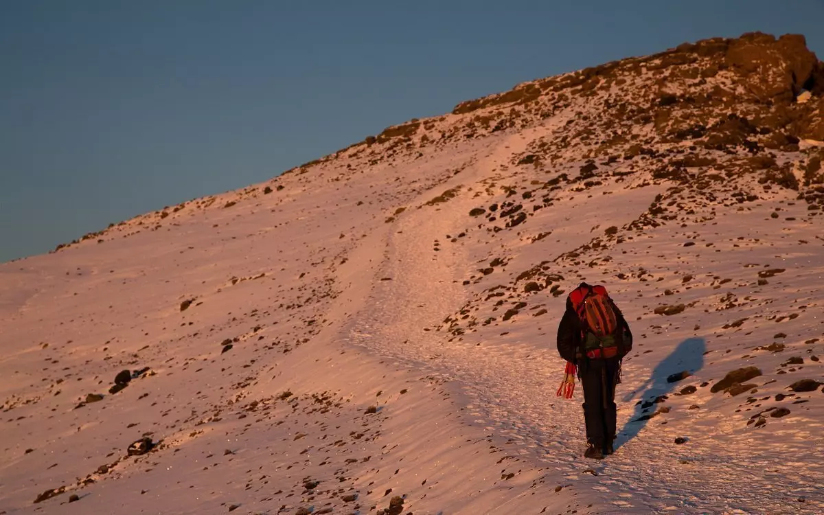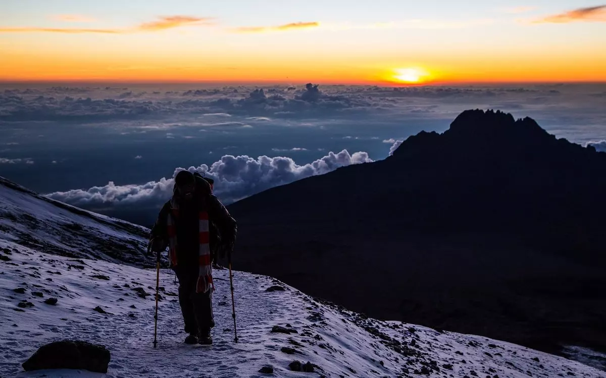 Omkring midnat bliver du vækket og efter en snack, starter den sidste opstigning til Uhuru Peak. At vandre i det vanskelige terræn i mørke, frem til solopgang, er den største udfordring for de fleste; målet er at nå Stella Point ved solopgang. Ved Stella Point gør du et stop for at nyde den smukke solopgang. Sørg for ikke at stoppe op for længe, da det vil blive nærmest uoverkommeligt at komme i gang igen som følge af kulde og træthed. Du fortsætter langs kraterkanten, og det sidste stykke til Uhuru Peak er en jævn stigning. Afhængig af årstiden kan der være sne det sidste stykke til Uhuru Peak, som er dit endelige mål, toppen af Kilimanjaro og toppen af Afrika. Når du toppen 5.895 m.o.h. kan du klappe dig selv på skulderen, nyde den fantastiske udsigt og tage et selfie ved Uhuru Peak skiltet, som evigt minde.