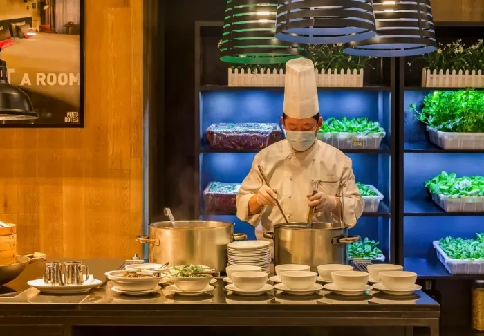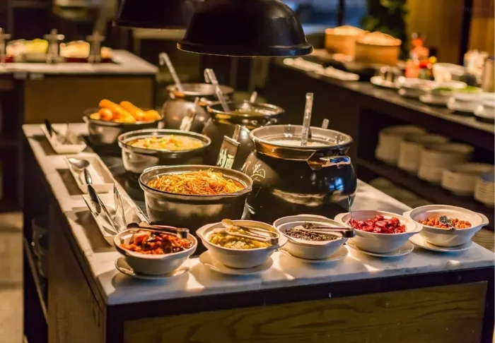 I hotellets morgenmadsrestaurant venter der dig hver dag et stort og lækkert udvalg af både vestlig- og kinesisk inspireret mad i den store morgenmadsbuffet.