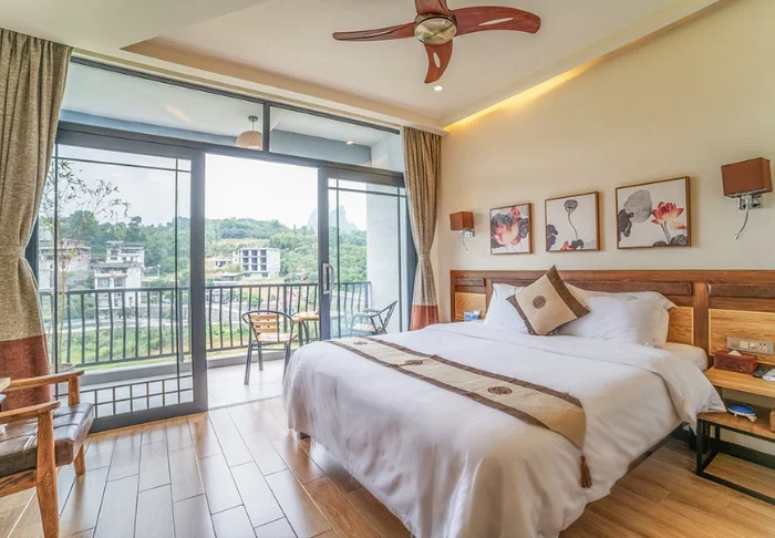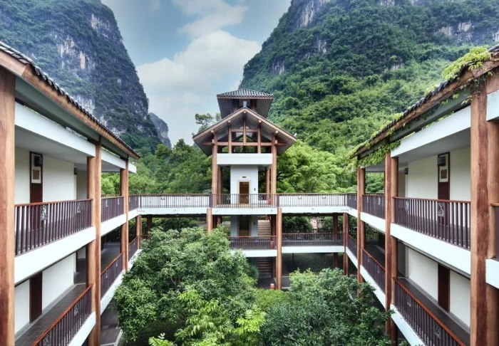 Yangshuo Riverside Resort ligger i rolige omgivelser ved Yulong-floden, et grønt og frodigt område lidt uden for Yangshuo. Her bor du med udsigt til karstbjergene og de små stier langs floden. Resortets placering giver en fin balance mellem ro og nærhed til områdets oplevelser, og du har let adgang til både Yulong-dalen og Yangshuos livlige centrum.