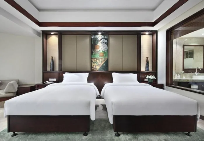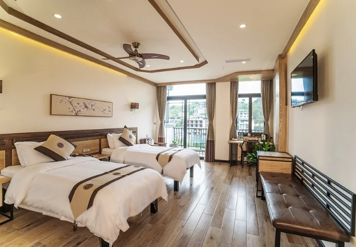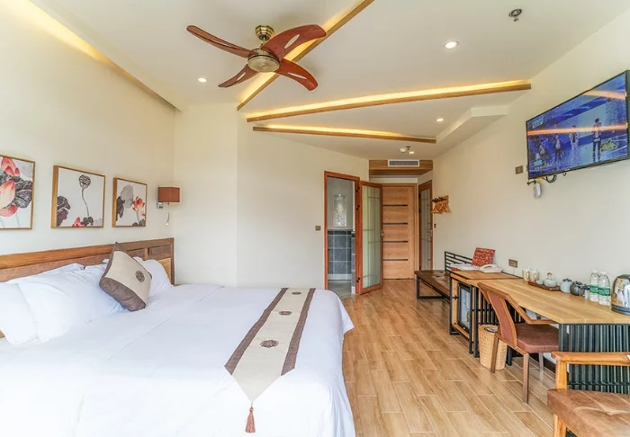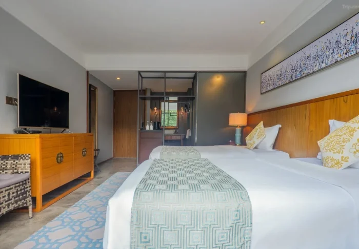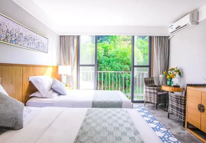 De stilfulde værelser er indrettet med traditionelle kinesiske senge og beroligende farver på væggene. På hvert værelse er der aircondition, minibar, værdiskab, wi-fi og privat badeværelse, men her er hverken tv eller telefon, for at du bedre kan nyde de skønne, afslappende omgivelser.