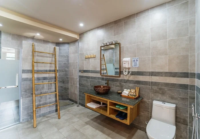 Resortet er større end mange andre overnatningssteder i området og har værelser, der er væsentligt mere rummelige end det, man normalt finder her. Du bor som udgangspunkt i et River View-værelse på ca. 50 m². Indretningen er klassisk og elegant med mørke trædetaljer, dæmpede farver og store vinduer, der giver et flot lysindfald. Her får du to enkeltsenge eller en dobbeltseng, sofa, skrivebord og et fladskærms-tv. Værelset har også minibar, elkedel, garderobe, aircondition samt wi-fi. Fra balkonen har du udsigt til haven, og det er et oplagt sted at starte dagen med en kop dampende te eller kaffe. Det private badeværelse er rummeligt og udstyret med både bruser og separat badekar. Her får du badekåbe, tøfler, hårtørrer og de nødvendige toiletartikler.