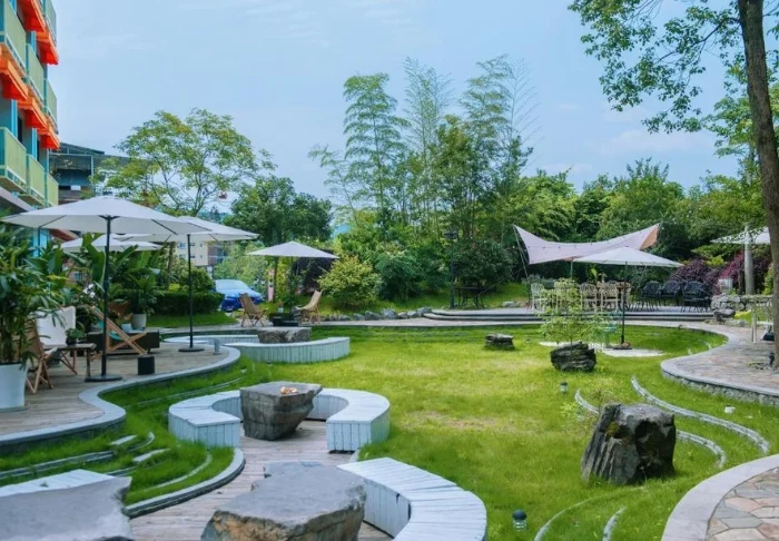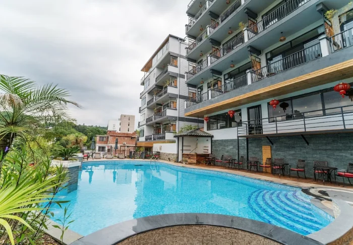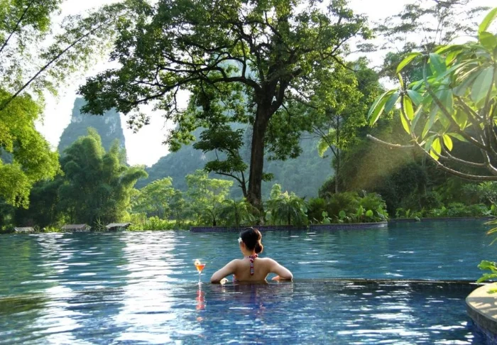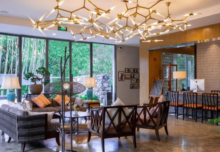Den udendørs pool vender ud mod dalen og bjergene, og er et oplagt sted at slappe af efter dagens oplevelser. Et andet hyggeligt samlingspunkt er hotellets teområde, hvor du kan smage på et udvalg af håndplukkede kinesiske teer. Personalet er trænet i traditionelle teceremonier og laver gerne en demonstration, hvis du har lyst til at opleve en kulturtradition, der har været en del af Kina i flere hundrede år.