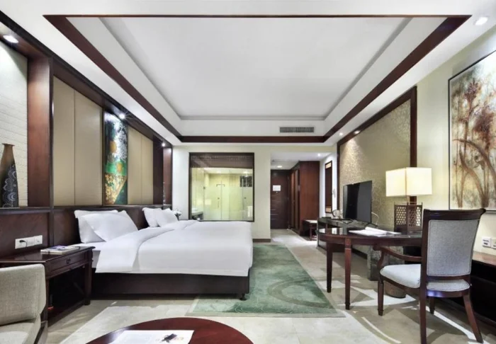Værelserne er elegant indrettet i kinesisk stil med træmøbler og fine detaljer. De er alle udstyret med moderne faciliteter som aircondition, Wi-Fi, værdiboks, te- og kaffefaciliteter og fladskærms-tv. Badeværelserne er moderne og nyligt renoverede. Her finder du både badekåbe, tøfler, hårtørrer samt diverse toiletartikler.