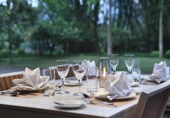 Hotellets restaurant serverer både lokale specialiteter og vestlige favoritter, alle lavet af friske råvarer fra nærområdet. Den lækre mad kan du vælge at spise inde i restauranten, eller du kan sætte dig ud til spisebordene ved flodbredden og nyde naturen imens.