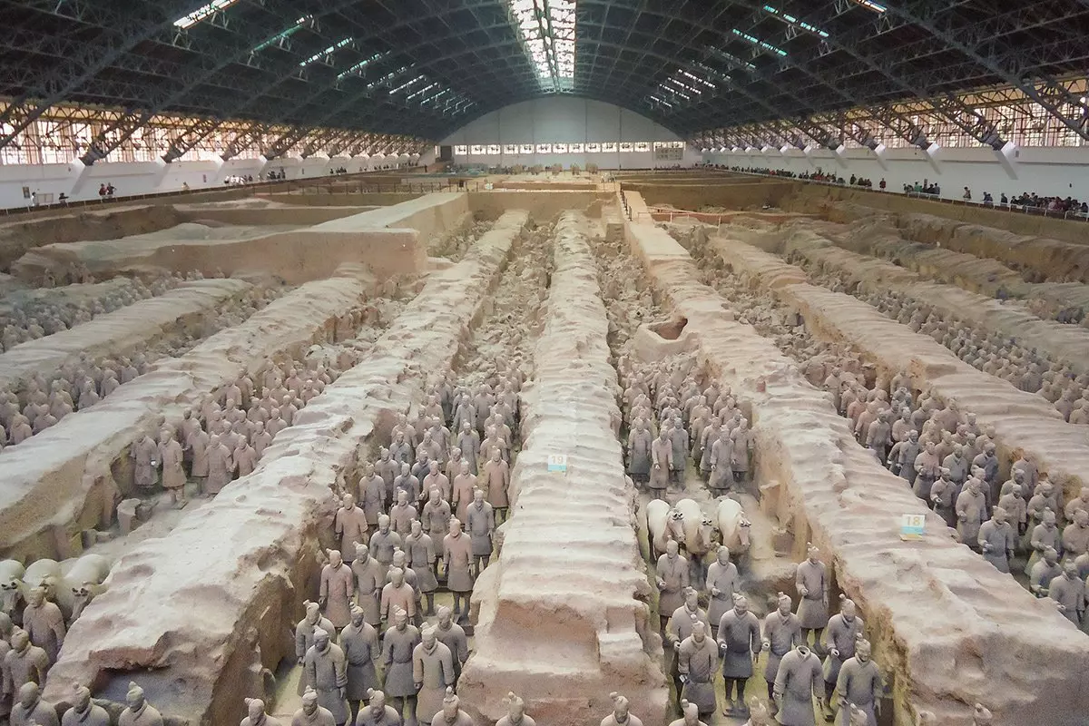 Det var lokale bønder, som var i gang med deres daglige arbejde ude i markerne, der i 1974 fandt fragmenter af en skulptur i menneskestørrelse. Arkæologer fortsatte udgravningerne, som resulterede i verdens største fund af underjordiske skulpturer. Udgravningen resulterede i over 7.000 terrakottakrigere, heste og vogne. Krigerne er mellem 175 og 190 cm høje, og ikke to krigere er ens. De har alle forskellige dragter, frisurer og ansigtstræk. Krigerne er opstillet på række nær kejser Qin Shi Huangs gravmæle. Fortællinger lyder på, at krigerne blev bygget til at beskytte deres hersker i efterlivet.