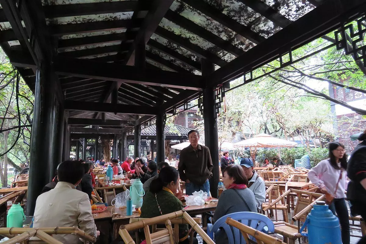 Der findes ingen bedre måde at komme tættere på kineserne end at sidde i et af Chengdus hyggelige tehuse i fx Folkets Park. Folkets Park blev anlagt i 1911 som den første offentlige park i Chengdu og er i dag blandt de bedste folkeparker i Kina. Slå dig ned ved et bord i tehuset Heming, der ligger ved parkens sø, og bestil en kop te og bare nyd atmosfæren. Her går snakken lystigt, og der bliver jongleret hurtigt rundt med mahjong-brikkerne ved bordene, mens der drikkes husets bedste te med hyppige påfyldninger. Nogle får sågar renset ører af en professionel ørerenser, der er udstyret med pandelygte, pincetter, tænger og børster med gåsedun. Ja, velkommen til Chengdu!