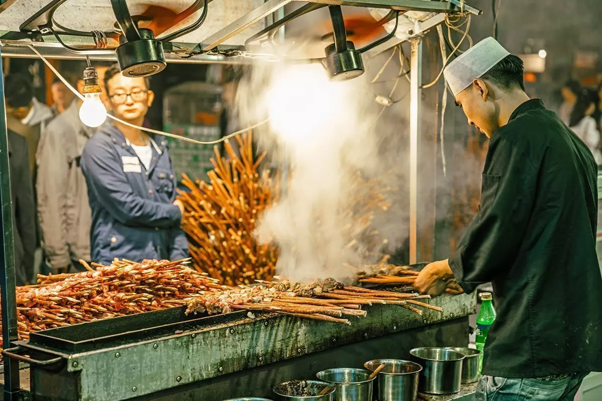 Turen slutter i de travle og farverige gader, hvor gadekøkkener ligger som perler på en snor. Her kan du opleve kvinder, der bærer tørklæde og mænd der bærer den muslimske hovedbeklædning ”kufi”. Gaden er indhyllet i forførende dufte fra de mange madboder med grillet lammekød, blæksprutter på spyd, krydrede supper, valnødder så store som hønseæg, friske frugter samt tørrede chilier og andre krydderier.
