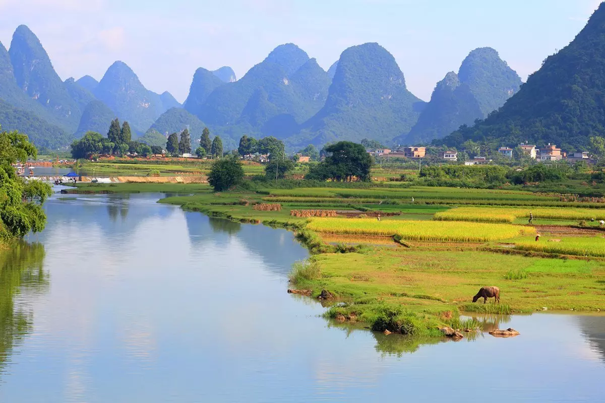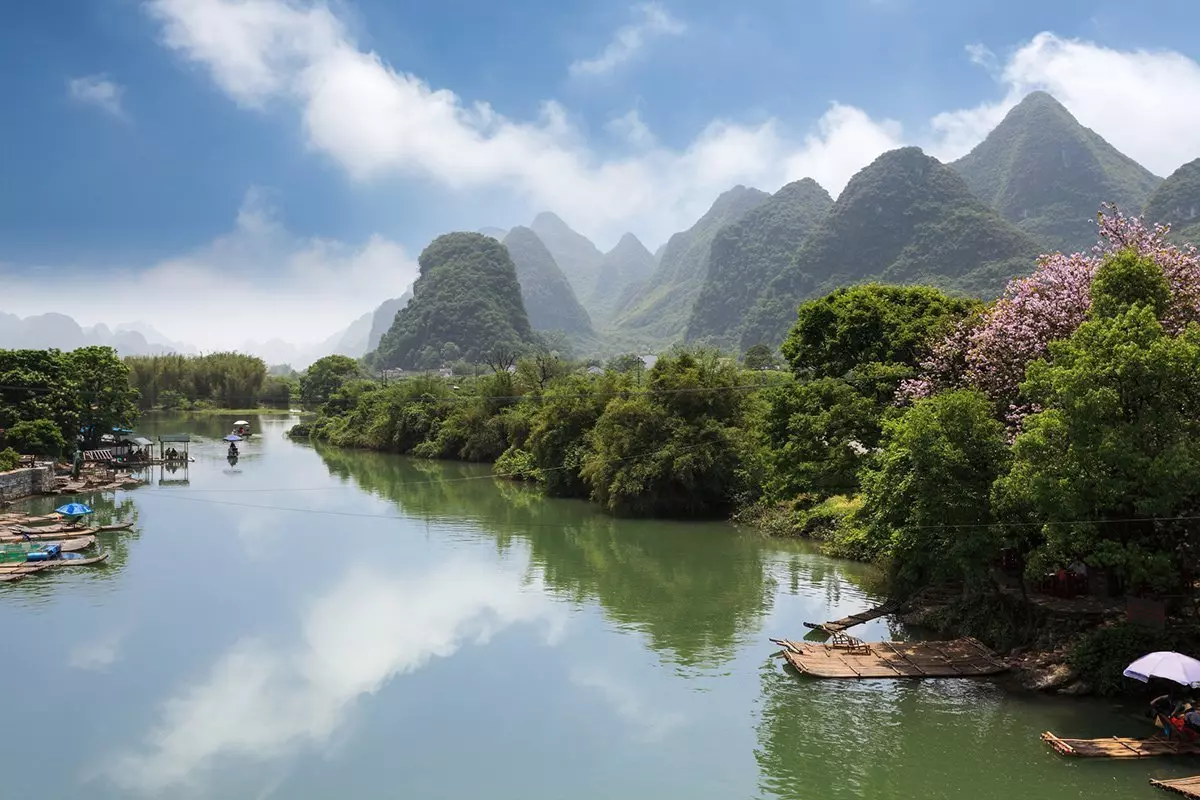 Yangshuo er omgivet af et malerisk og betagende landskab. Det er nærmest umuligt at overdrive den skønhed, der findes i Yangshuo og ved Li-floden, der løber igennem byen. Her finder du mosgrønne kalkstensbjerge, og bønder, der flittigt passer deres marker. Og så er der ro og frisk luft. Det er ikke svært at forstå, hvorfor dette område har inspireret malere og poeter i århundreder. Faktisk er landskabet i Yangshuo så værdsat af kineserne selv, at floden Li, rismarkerne og kalkstensbjergene er afbildet på 20 yuan-pengesedlen.