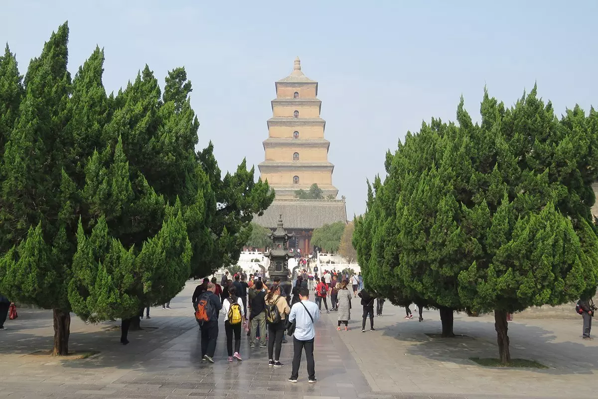 Du bliver herefter kørt tilbage til Xi’an, hvor du skal besøge Den Store Vildgås Pagode, som er på UNESCOs verdensarvsliste og et helligt sted for buddhister. Pagoden blev bygget i år 652 som opbevaringssted for værdifulde buddhistiske skrifter, som munken Xuanzang bragte med hjem fra en rejse i Indien. Det var herfra, buddhismen for alvor bredte sig til det øvrige Kina, og det er derfor et valfartsted for mange af Kinas buddhister. Pagoden er en del af tempelkomplekset Daci’en, der under Tang-dynastiet var beboet af 300 munke. I dag bor her ca. 20 praktiserende munke. Guiden vil fortælle dig historien om, hvordan pagoden fik sit besynderlige navn.