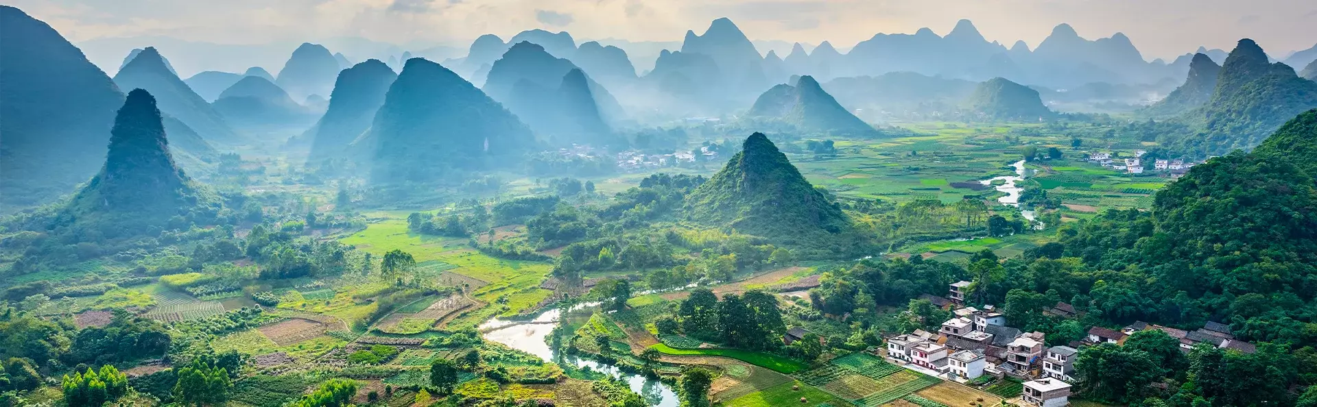Yangshuo er omgivet af et nærmest poetisk landskab, der tager pusten fra enhver. Floden Li løber langs de høje kalkstensbjerge, der skyder op som prangende pukler i landskabet. Lidt uden for byen kan du opleve de flittige, lokale bønder, der plejer deres ris-, grøntsags- og blomstermarker.