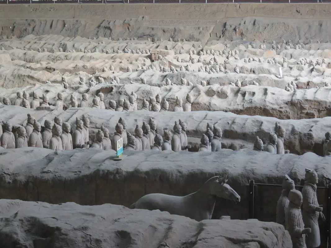 I år 1974 fandt bønder fragmenter af en skulptur i menneskestørrelse 45 km uden for Xi’an. Arkæologer blev tilkaldt og fortsatte udgravningerne, der resulterede i verdens største fund af underjordiske skulpturer. Over 7.000 terrakottakrigere, heste og vogne blev opdaget. Krigerne måler mellem 175 cm og 190 cm og har alle forskellige ansigtstræk, frisurer og dragter. De er opstillet på række klar til kamp nær kejser Qin Shi Huangs gravsted. Det siges nemlig, at krigerne blev bygget til at beskytte deres hersker i efterlivet.
