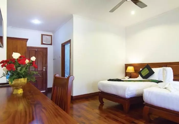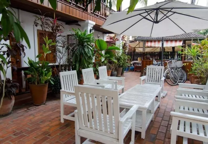 Hotellet er bygget omkring tre fredede bygninger og kombinerer traditionel laotisk arkitektur med boutique-stil. Omgivelserne med frodige haver og lotusdamme giver en rolig og afslappet stemning, selvom du stadig har byens liv lige uden for døren.