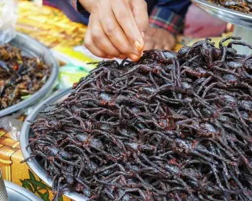 Fra Siem Reap fortsætter du sydpå mod hovedstaden gennem et smukt landskab af rismarker og små landsbyer. Ruten følger delvist Tonle Sap-søens bred, og du gør stop i Skuon, en by kendt for sine helt særlige cambodianske delikatesser.