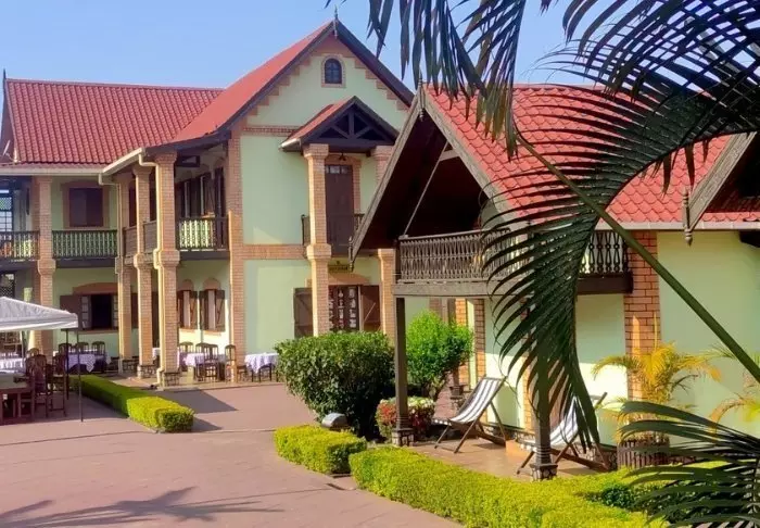 De 22 værelser er alle indrettet i traditonel madagaskisk stil – altså meget enkelt, med trægulv og træmøbler – og ikke så meget andet. Her er pænt og rent, men du skal ikke forvente ret meget andet, end en seng at sove i, god mad og forhåbentlig fin underholdning.