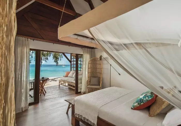 Alle bungalower har egen veranda med udsigt og direkte adgang til stranden. Der er møbler til afslapning på verandaen og alle bungalower har desuden to solsenge på stranden. Indretningen er klassisk malagassisk stil med masser af træ og store døre, som kan åbnes, så vinden kan cirkulere og ventilere.