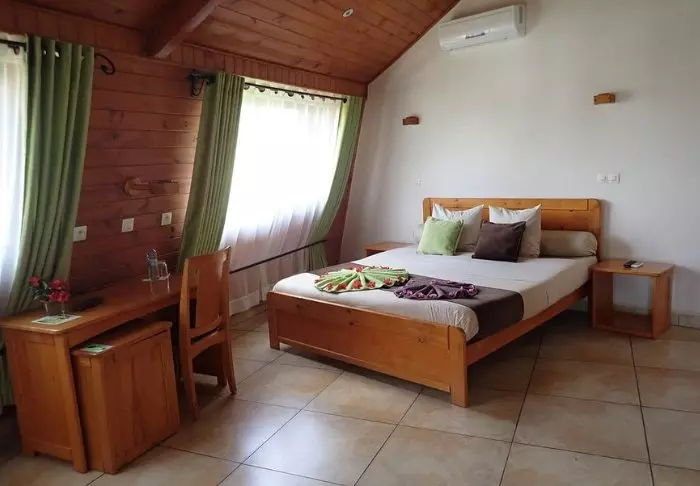 Her er 22 værelser i forskellige udformning. Fælles for dem alle er, at de er store. De er indrettet med solide træmøbler med kulørte puder, og der er ofte også træ på væggene, som er piftet op med farverige gardiner, så det, der ellers kunne virke mørkt, nu er charmerende. Værelserne har alle aircondition, værdiboks, minibar, TV og Wi-Fi (i det omfang det virker).