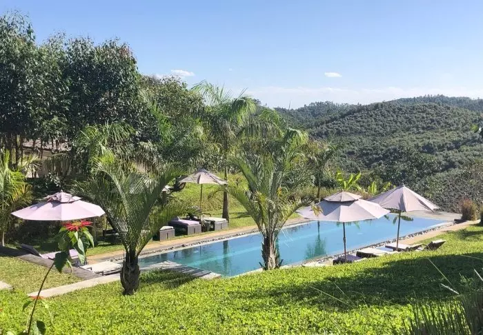 Lodgen er bygget på toppen af en bakke, hvilket gør, at udsigten fra poolområdet er enestående. Foran dig har du regnskoven – men det er ikke en hvilken som helst regnskov. Det er oprindeligt regnskov fra dengang alle de nuværende kontinenter hang sammen i et superkontinent.